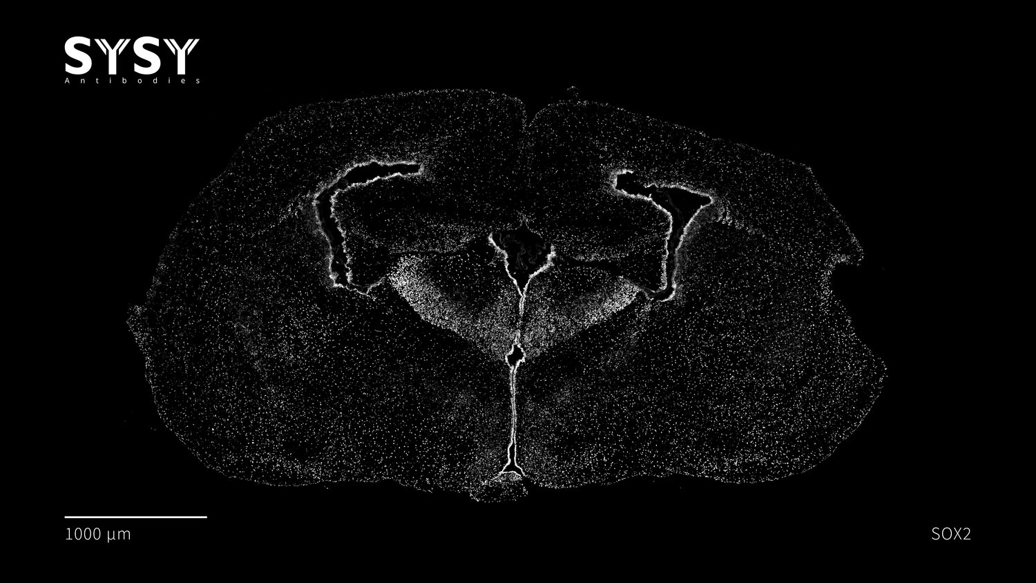 Indirect immunostaining of a formaldehyde fixed coronal newborn mouse brain section (P0) with rabbit anti-SOX2 antibody (cat. no. 347 003, dilution 1 : 500).