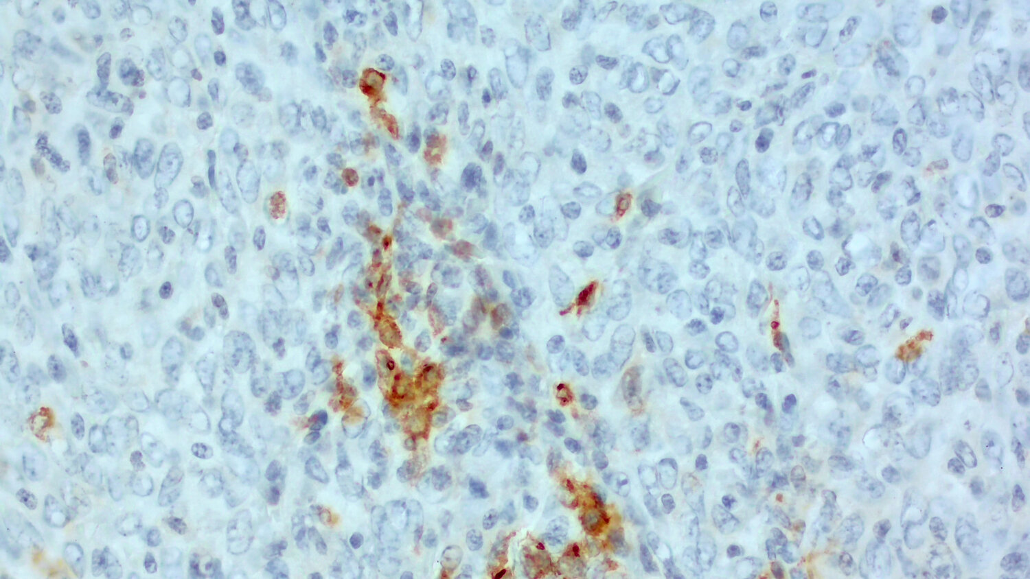 Antigen-presenting cells are important for the induction of anti-tumor immunity by priming naïve T-cells to differentiate into effector cells. As CD11c is highly expressed in human monocyte derived and in human conventional DCs, CD11c+ cells can be found in human tumors to be located in areas with high numbers of tumor-infiltrating lymphocytes (TILs). Therefore, high CD11c expression is associated with a longer median overall survival in patients e.g., with gastric cancer (Wang et al., 2015) or high-grade serous ovarian cancer (Corvigno et al., 2020). Furthermore, experiments in syngeneic mouse models in immunocompetent mice show that CD11c+ dendritic cells play a critical role in the tumoricidal activity of antibody therapies (Haynes et al., 2010). Therefore, histological detection of CD11c+ cells in syngeneic mouse models is an essential biomarker in pre-clinical oncology (figure 6).