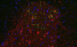 The vesicular acetylcholine transporter (VAChT) is responsible for the transfer of acetylcholine from the cytoplasm into synaptic vesicles.