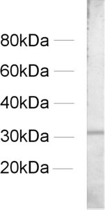 Cat. No. 110 033 50 µg specific antibody, lyophilized. Affinity purified with the immunogen. Albumin and azide were added for stabilization. For reconstitution add 50 µl H2O to get a 1mg/ml solution in PBS. Then aliquot and store at -20°C to -80°C until use.