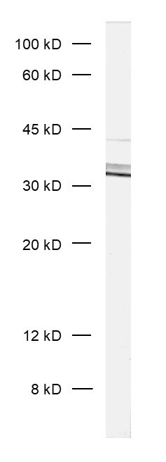 This antibody detects the 35 kDa and 42 kDa variants of syntaxin 5. |