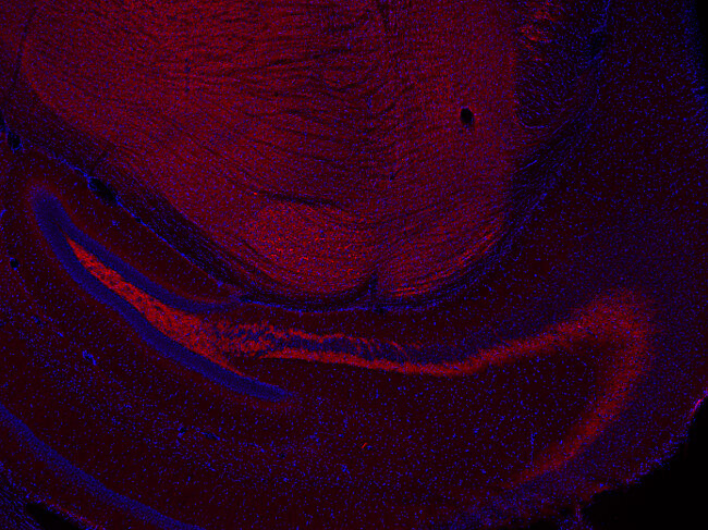 Antibody detects an unspecific band at ~35 kD in rat brain.