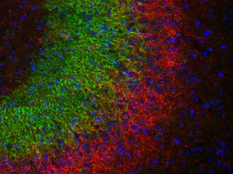 The vesicular glutamate transporter 3 VGLUT 3 is closely related to VGLUT 1 and VGLUT 2 by sequence similarity. However, VGLUT 3 defines a new distinct glutamatergic system in brain which is strictly seperated from VGLUT 1 and VGLUT 2 synapses. Co-localization with the acetylcholine transporter VAChT and the monoamine transporter 2 VMaT 2 has been observed.