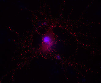 Albumin and azide were added for stabilization. For reconstitution add 100 µl H2O to get a 1mg/ml solution in PBS. Either add 1:1 (v/v) glycerol, then aliquot and store at -20°C until use, or store aliquots at -80°C without additives. Reconstitute immediately upon receipt! Avoid bright light when working with the antibody to minimize photo bleeching of the fluorescent dye. |