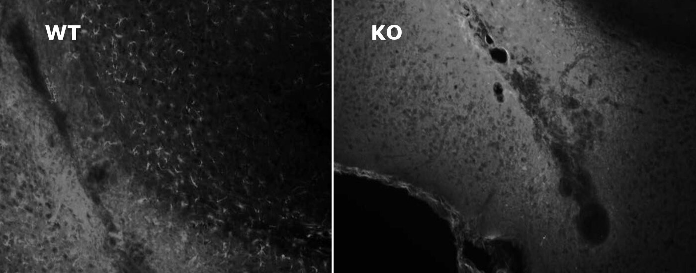 Point-mutations in the GFAP gene have been correlated to Alexander disease, a fatal leukoencephalopathy that leads to the dysmyelination or demyelination of the central nervous system.