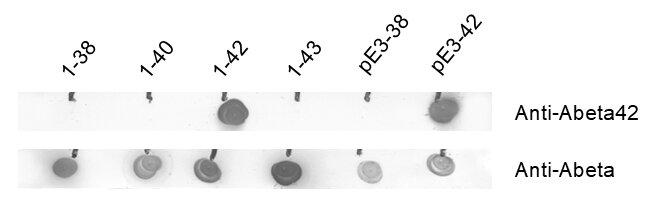| Immunogen | Synthetic peptide corresponding to the carboxy terminal part of human Abeta42 (UniProt Id: P05067) |