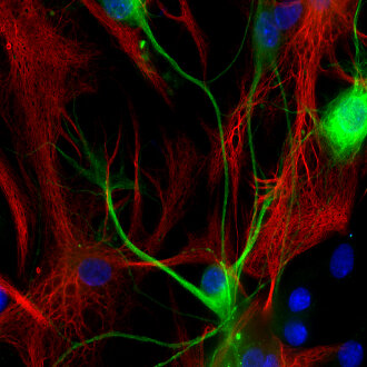 Immunocytochemistry (ICC) on 4% PFA fixed cells. Immunoreactivity is usually revealed by fluorescence. Some antibodies require special fixation methods. For details, please refer to the “Remarks” section.