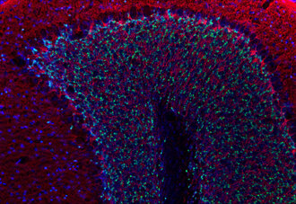 Five EAATs with differential expression patterns have been described so far: EAAT1, also referred to as GLAST and SLC1A3, has neuroprotective potential following ischemia and occurs in reactive astrocytes and activated microglia. EAAT2 (GLT-1, SLC1A2) is the most abundant isoform and is primarily expressed in astrocytes. Both variants show high levels in brain and retina. EAAT3 / SLC1A1, EAAT4 / SLC1A6 and EAAT5 / SLC1A7 are expressed in neurons (2). EAAT4 shows weak expression in the forebrain and high levels in the cerebellum, where it mainly locates to Purkinje cells (3). EAAT5 primarily occurs in the retina, where it locates very close to glutamate release sites. In K.O. mice flicker resolution is considerably compromised (4). Recent findings suggest that EAAT5 is an abundant isoform, expressed also in non-neuronal peripheral tissues (5).