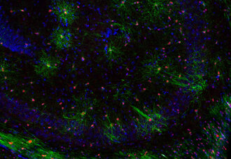 Olig2 (also known as BHLHB1 and PRKCBP2) is a basic helix–loop–helix transcription factor characteristic of the oligodendroglial lineage and plays key roles in the specification and maturation of oligodendrocytes. Oligodendrocytes are glial cells that produce and maintain central nervous system myelin; Morphologically, oligodendrocyte nuclei are typically smaller and more oval than nuclei of other CNS cell types. (1-3).