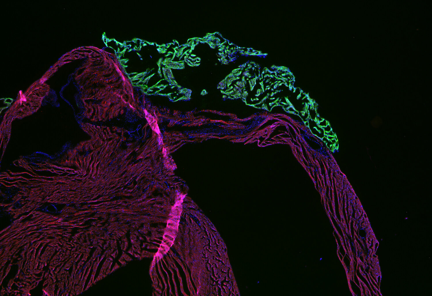 During cardiogenesis two major isoforms of myosin light chain 2 are co-expressed in a tightly regulated manner. MLC-2A is only present in the atrium while MLC-2V is exclusively expressed in the ventricle. Knock out studies revealed that the 2A isoform cannot substitute for the 2V variant in the ventricular chamber.