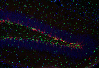 Doublecortin is highly expressed in neuronal cells of fetal brain but absent from other tissues. In the adult dentate gyrus it is only expressed in cells contributing to adult neurogenesis.