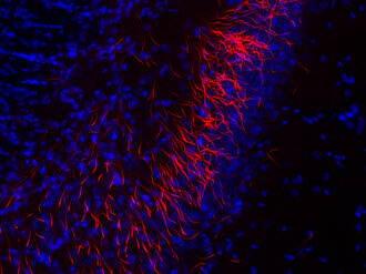 TRIM46 localizes to newly specified axons and, at later stages, to the axon initial segment (AIS). By forming closely spaced parallel microtubule bundles it plays a crucial role in the initial polarization of neuronal cells.