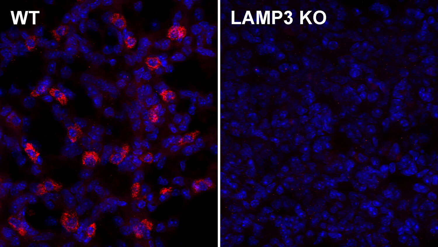 | Specificity | Recognizes LAMP 3, no crossreactivity to LAMP 1, LAMP 2 and LAMP 5. K.O. validated |