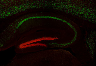 The prospero-related homeobox transcription factor 1, Prox1, is important for the embryonic development of various organs (1) including the eye, liver, pancreas, lymphatic system, heart and the central nervous system (CNS) (2). It is a regulator of cell division with impact on e.g. neurogenesis and cancer development and progression. In the CNS, the expression is not restricted to the embryonic development and to precursor cells. Prox1 is a well-known marker for granule cells of the dentate gyrus (DG) during embryonic development, adult neurogenesis but also for mature granule cells in the adult brain (3). Weaker expression can also be detected outside the DG of the adult brain. Prox1 was shown to be expressed in oligodendrocyte progenitors, e.g. in the subventricular zone and the corpus callosum (4) and in a subtype of cortical interneurons (5).