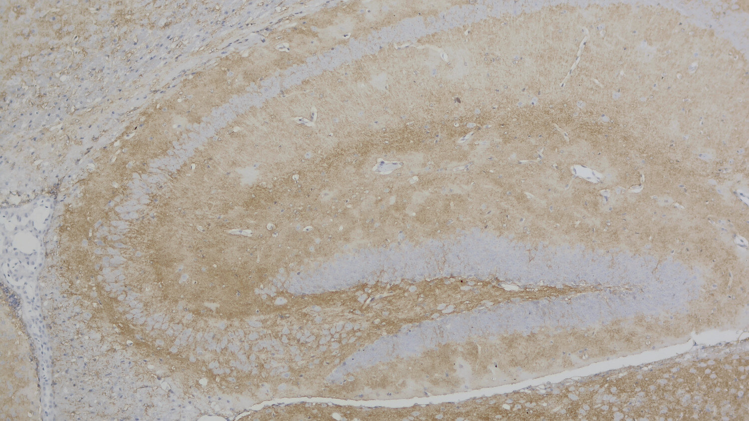 ATP1A2, also referred to as Sodium/potassium-transporting ATPase subunit alpha-2, is the catalytic subunit of the enzyme, which catalyzes the hydrolysis of ATP coupled with the exchange of sodium and potassium ions across the plasma membrane. This process is essential for maintaining the asymmetrical distribution of Na+ and K+ ions and the resting membrane potential, thereby providing the energy needed for active nutrient transport.