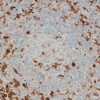 Ionized calcium-binding adaptor molecule 1 (IBA1) or allograft inflammatory factor1 (AIF-1) is an EF hand calcium binding protein which is expressed by cells of the monocyte/macrophage lineage and by germ cells in the testis (1). In mice, IBA1/AIF-1 can be regarded a “pan-macrophage marker” because, except for alveolar macrophages, all subpopulations of macrophages express IBA1/AIF-1 (1). In human gliomas IBA1 defines a distinct subset of tumor-associated activated macrophages/microglial cells (2).