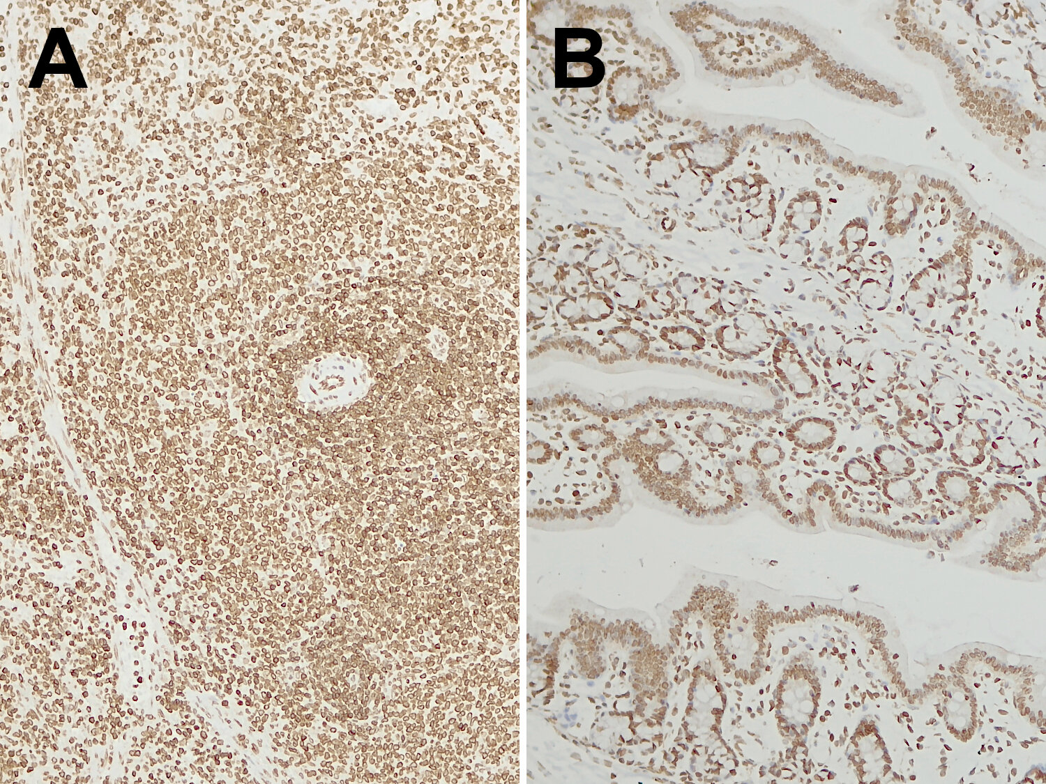 Duplication of the LMNB1 gene causes adult-onset autosomal-dominant leukodystrophy (ADLD), a rare neurological disorder in which overexpression of LMNB1 causes progressive central nervous system demyelination. Improper Lamin B1 expression is often present in tumor cells and decreased levels are observed for example in colon cancer, breast cancer and B-cell malignancies. Lamin B1 loss is also a senescence-associated biomarker and distinguishes senescent from proliferating cells in pre-neoplastic lesions or marks senescent cells in various age-related pathologies.