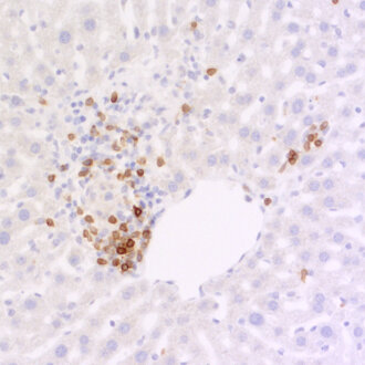 Cluster of differentiation 3 (CD3) is a defining feature of cells belonging to the T cell lineage. It is composed of the four subunits CD3 gamma, CD3 delta, CD3 epsilon (CD3e) and CD3 zeta, that form a multimeric protein complex. This complex associates with the T cell receptor (TCR) and serves as a T cell co-receptor. The CD3 molecules contain immunoreceptor tyrosine-based activation motifs (ITAMs) that serve as the nucleating point for the intracellular signal transduction machinery upon TCR engagement. TCR/CD3 signaling is central to the initiation of antigen-specific T cell responses to pathogens and vaccines, as well as transplanted tissues, tumors, and autoantigens. CD3 is initially expressed in the cytoplasm of pro-thymocytes. During T cell maturation the expression of CD3 migrates to the cell-membrane. The specific appearance at all stages of T cell development make CD3 a useful immunohistochemical marker for T cells in tissue sections. In the clinical setting, CD3 is a relevant marker for the classification of malignant lymphomas and leukemias as the antigen remains present in almost all T-cell lymphomas and leukemias. It can also be used to detect T cells in celiac disease, lymphocytic and collagenous colitis.