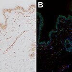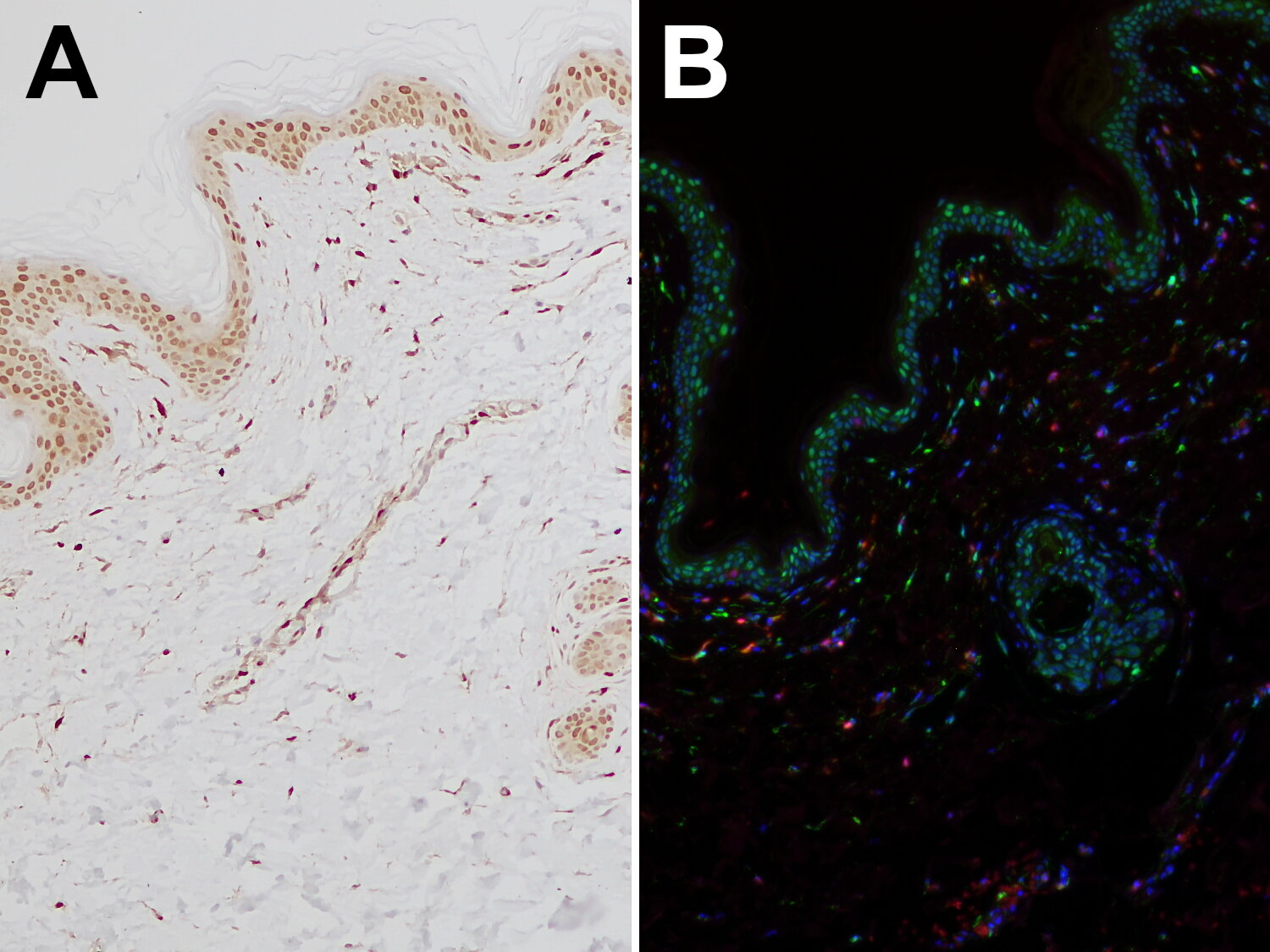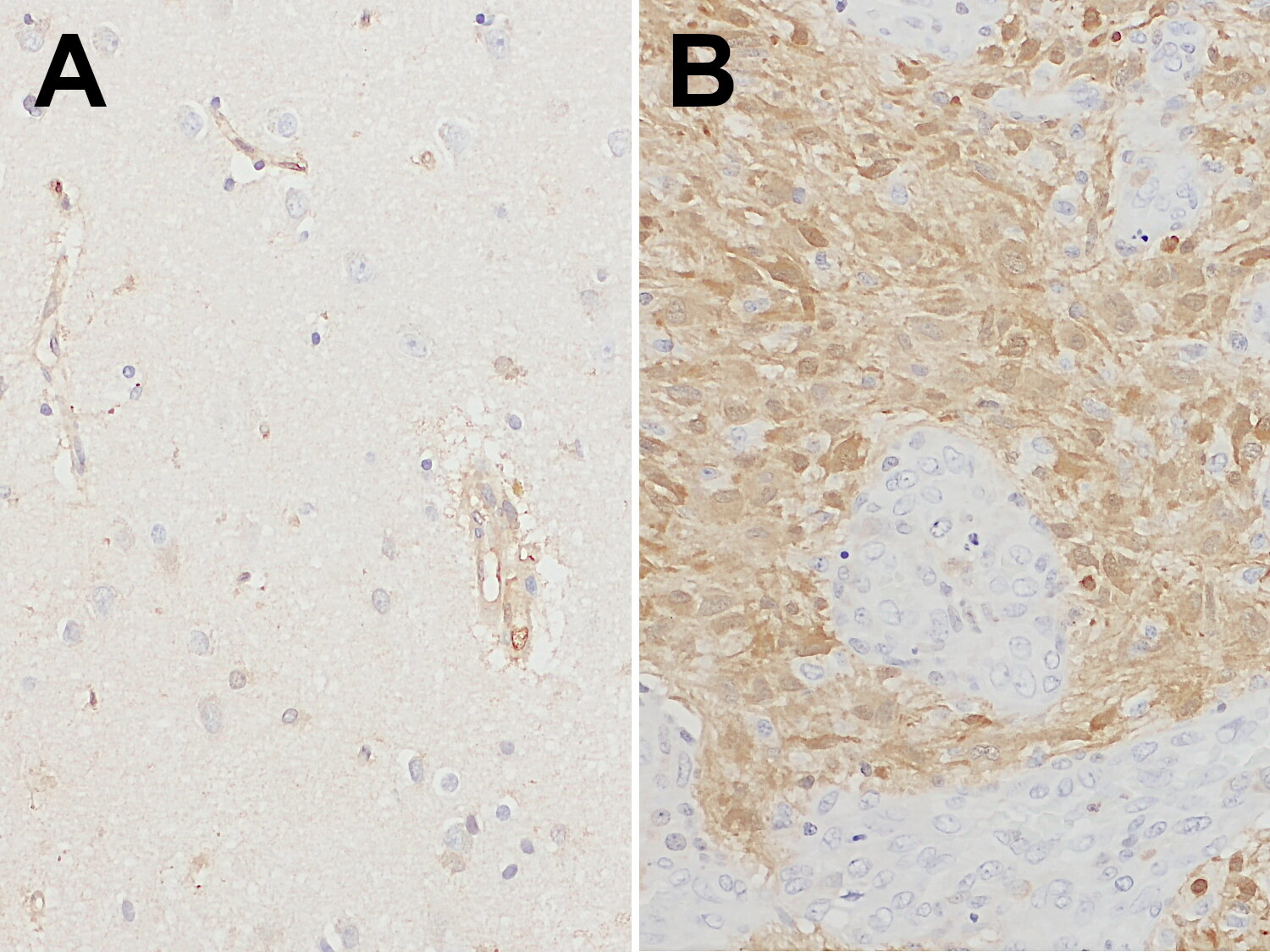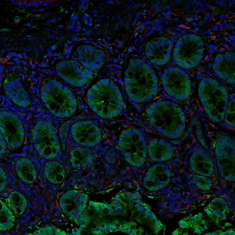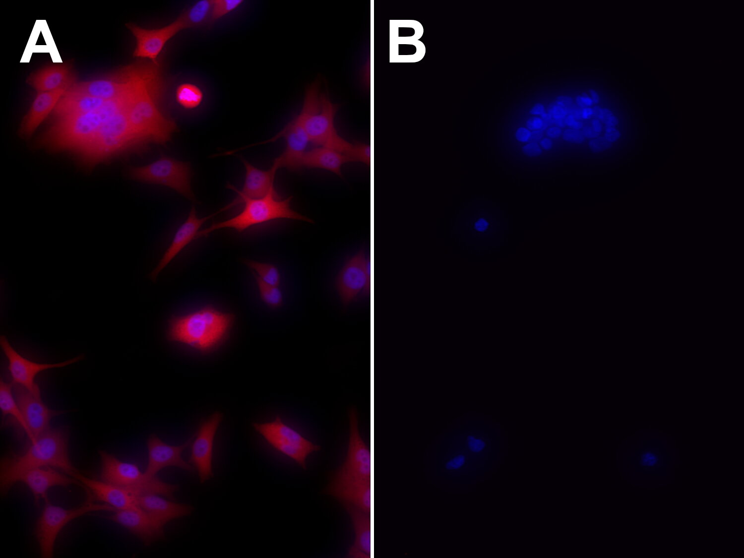 Galectin-3 (Gal-3, Mac-2) is a β-galactoside binding protein that is predominantly located in the cytoplasm and shuttles into the nucleus. In addition, it is secreted to the cell surface and into biological fluids. Depending on its localization, it exerts pleiotropic biological functions like cell growth, cell differentiation, inflammation, fibrogenesis, migration, apoptosis, and host defense (1). It is also involved in cancer pathogenesis, proliferation, and spreading of metastasis (2). Galectin-3 is highly expressed in the covering epithelia of the digestive tract and the urinary system (3) and plays important roles in the organization of renal and intestinal cells. Furthermore, Galectin-3 has been identified in a variety of other cell types including fibroblasts, keratinocytes, granulocytes, dendritic cells, and macrophages (2). Galectin-3 is expressed by certain tissue-resident macrophages such as Kupffer cells in the liver, red pulp macrophages in the spleen, and alveolar macrophages in the lung (3). In the brain, Galectin-3 is abundant in activated microglia but not expressed in resting cells. Following brain injury, Galectin-3 triggers anti-inflammatory properties of microglia (4). In Alzheimer’s disease, Gal-3 expression is strictly associated with microglial cell activation around Aβ plaques. In stroke, Gal-3 was found to be expressed primarily in proinflammatory microglial cells (5).