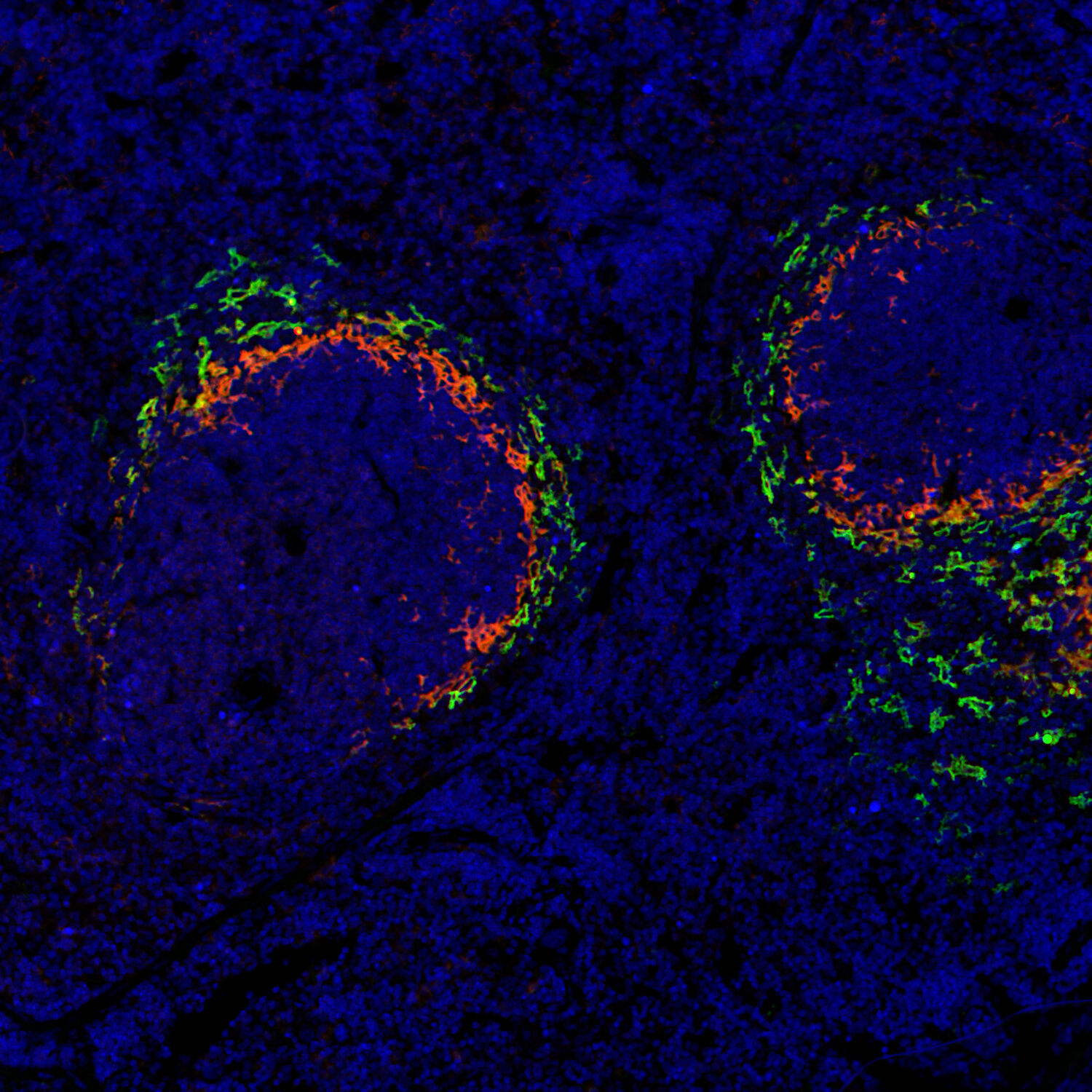 The macrophage receptor with collagenous structure (MARCO) belongs to the class A scavenger receptor (SR-A) family, all of which are transmembrane proteins with a homotrimeric structure (1). MARCO is constitutively expressed by peritoneal macrophages and splenic marginal zone macrophages. Its expression can be induced in other macrophages, such as Kupffer cells or alveolar macrophages, after bacterial infection or intravenous injection of LPS (2). MARCO mediates the binding of pathogens and unopsonized environmental particles, suggesting an important role in host defense (3). In tumor-associated macrophages, MARCO defines a subtype of suppressive TAMs (4) and is considered a potential prognostic and immunotherapeutic biomarker (5).