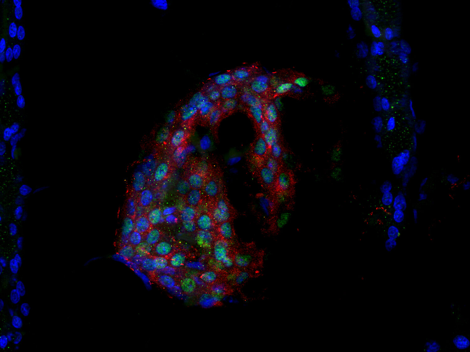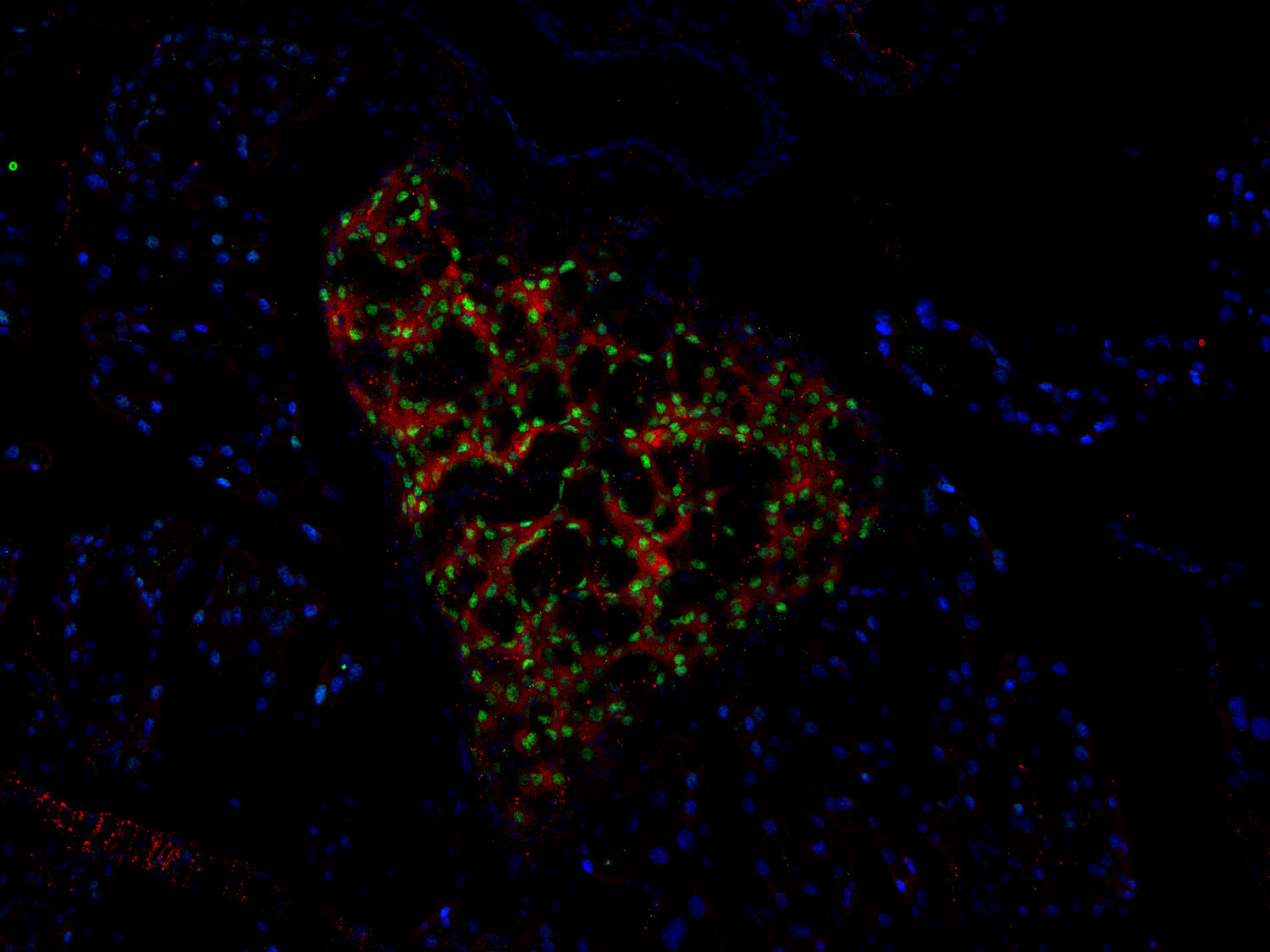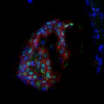 Maf (musculoaponeurotic fibrosarcoma) family proteins belong to the basic-leucine zipper family of transcription factors and are divided into large Maf and small Maf proteins depending on their molecular size. Four types of large Maf transcription factors have been identified in mice and humans: MafA, MafB, c-Maf and NRL (1). MafA is a β-cell-specific transcription factor in adult pancreatic islets and regulates glucose-stimulated insulin secretion (2). MafB, on the other hand, is specifically expressed in glucagon-expressing α-cells in the pancreas of adult mice. In the embryonic or neonatal pancreas, immature β-cells first express MafB, whereas MafA is expressed in mature β-cells and is essential for the maintenance of the mature phenotype (3). Several studies have shown, that the expression of MafA is impaired in β-cells of rodents and humans with diabetes (3). In addition to its role in the pancreas, MafA is also involved in the development of neuronal cells. For example, MafA is involved in the development of glutamatergic neurons in the olfactory bulb (4) and of dorsal root ganglia in the spinal cord (5).