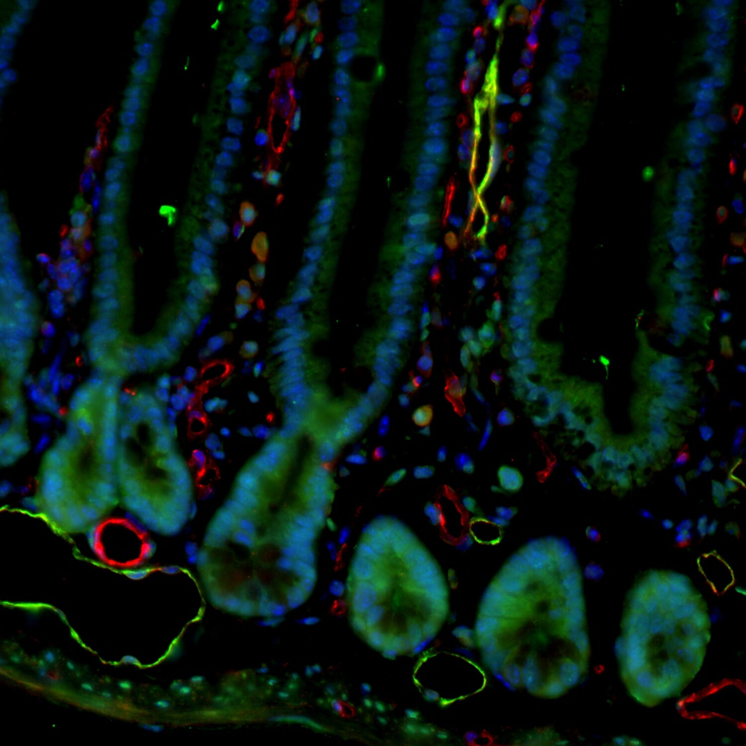 Lymphatic vessel endothelial hyaluronan receptor-1 (Lyve1) is a type I integral membrane glycoprotein and a member of the Link protein superfamily (1). It is predominantly expressed on lymphatic endothelial cells, where it functions as a key marker for identifying lymphatic vasculature and mediates binding and internalization of hyaluronan (HA) (2). Beyond the lymphatic system, Lyve1 is also detected in liver sinusoidal endothelial cells (3) and in subsets of tissue macrophages, including perivascular and interstitial macrophages in the lung, aorta, and mammary gland (4,5). Functionally, Lyve1 regulates HA metabolism, extracellular matrix remodeling, and leukocyte trafficking (2,4). Clinically, altered Lyve1 expression is implicated in several pathologies, as it correlates with lymphangiogenesis and metastatic spread in cancer (3,6), contributes to the regulation of vascular homeostasis and arterial stiffness (5), and participates in inflammatory and fibrotic conditions, such as rheumatoid arthritis and psoriasis (7).