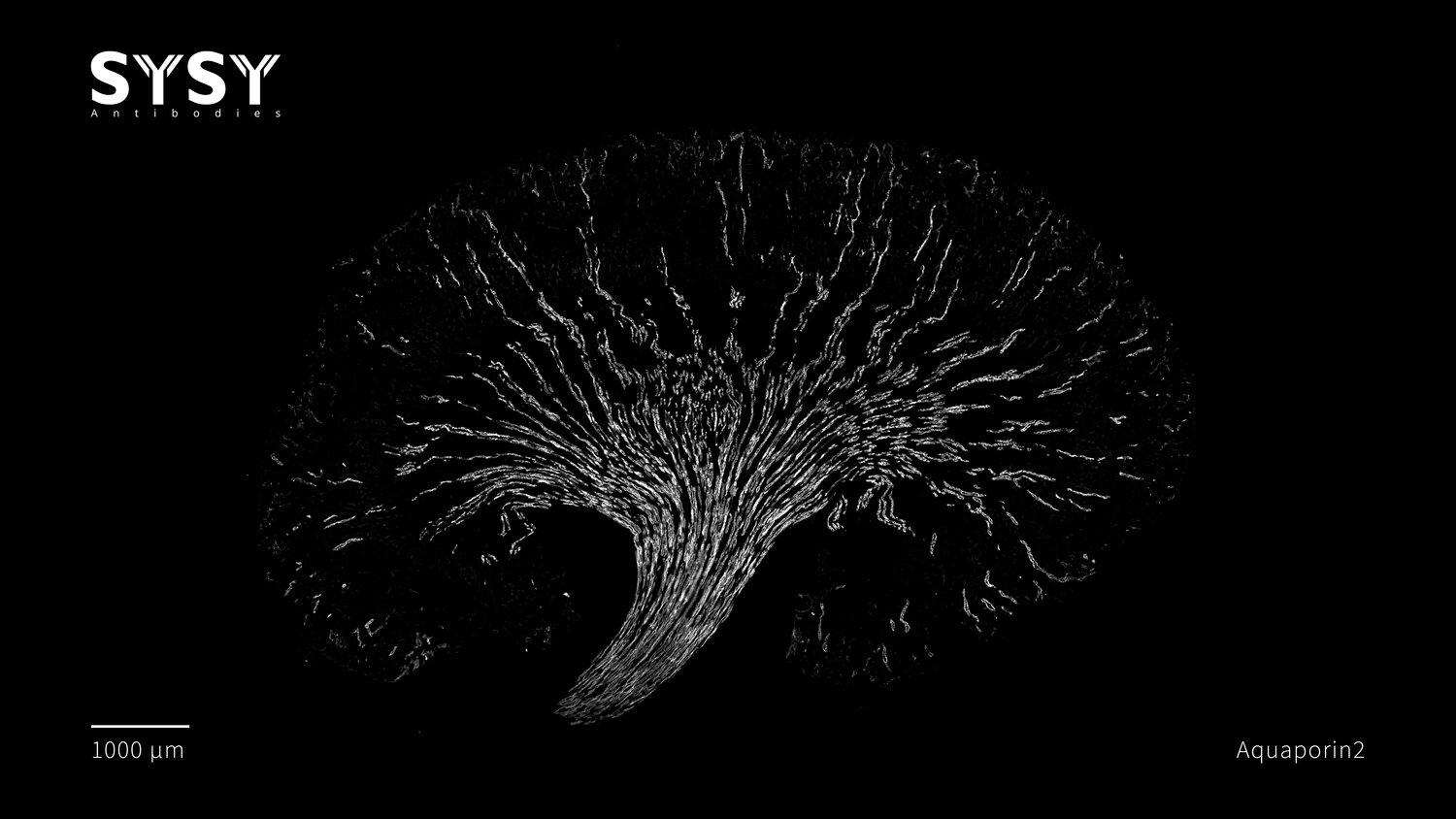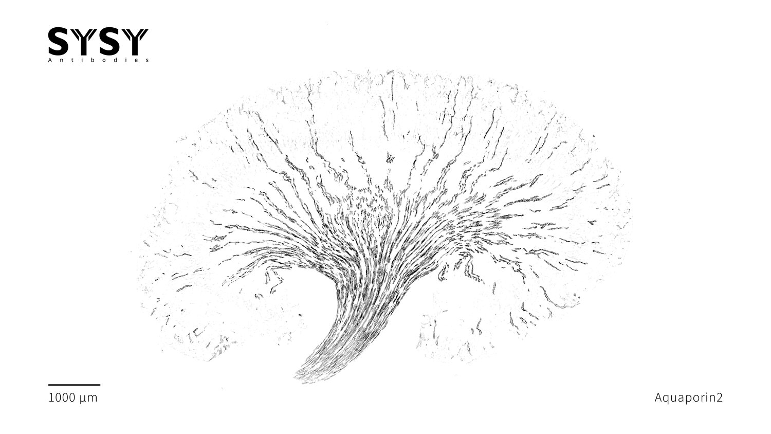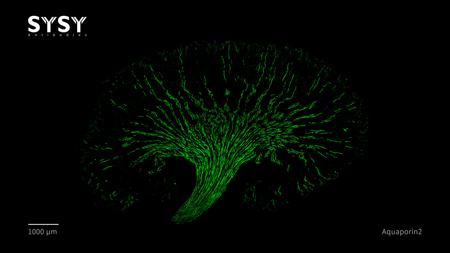 Indirect immunostaining of a formaldehyde fixed mouse kidney section with guinea pig anti-Aquaporin2 antibody (cat. no. 429 204, dilution 1 : 500).