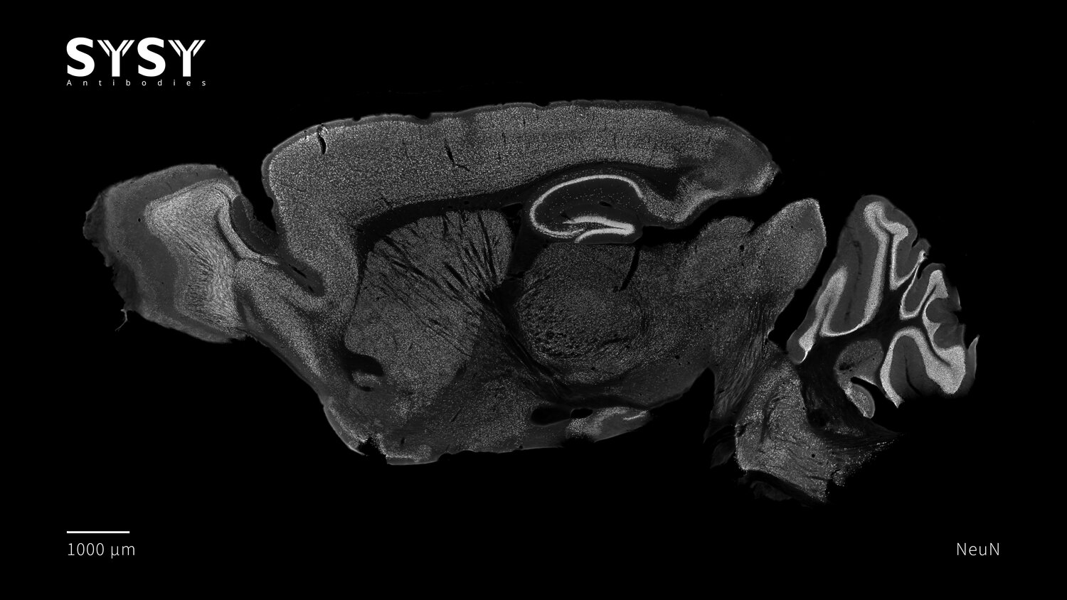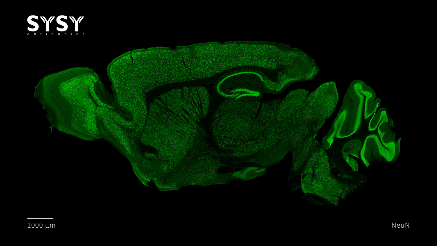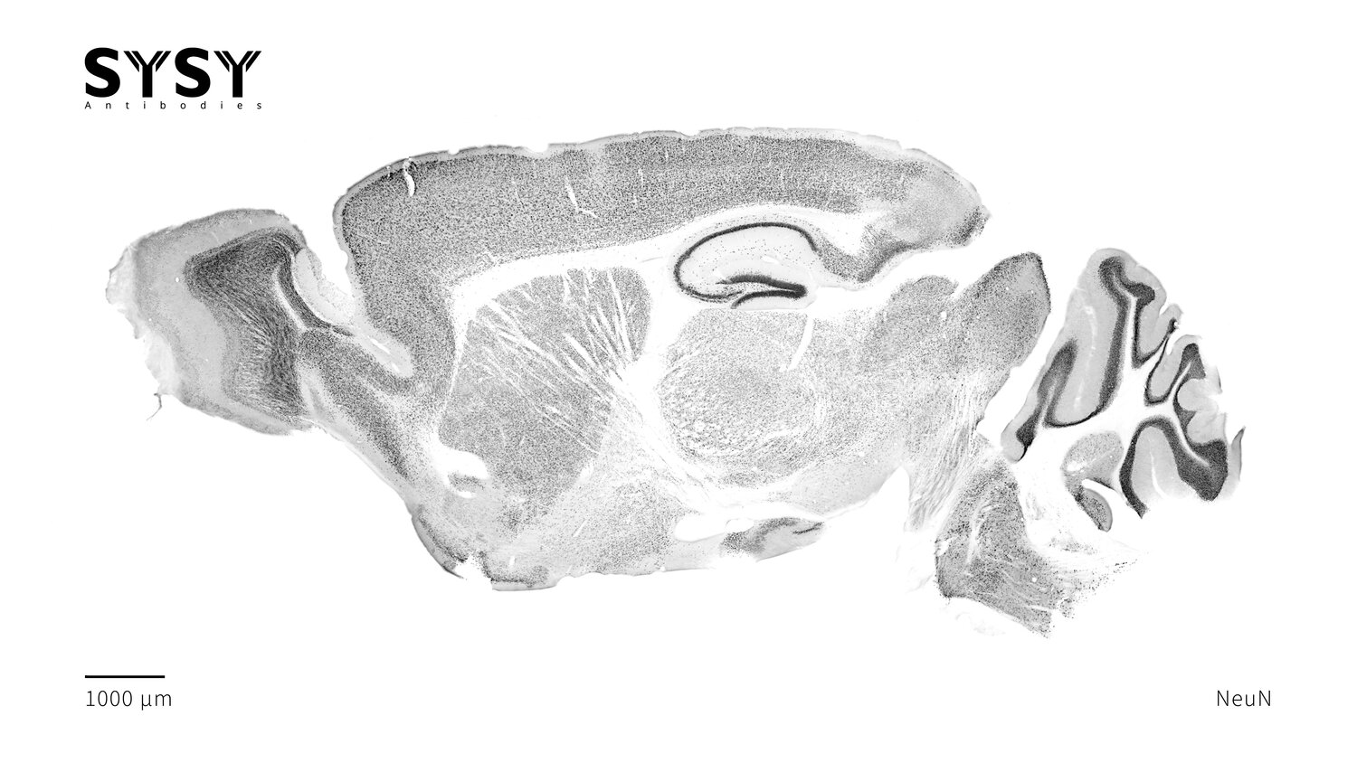 Indirect immunostaining of a formaldehyde fixed sagittal mouse brain section with guinea pig anti-NeuN antibody (cat. no. 266 004, dilution 1 : 500).