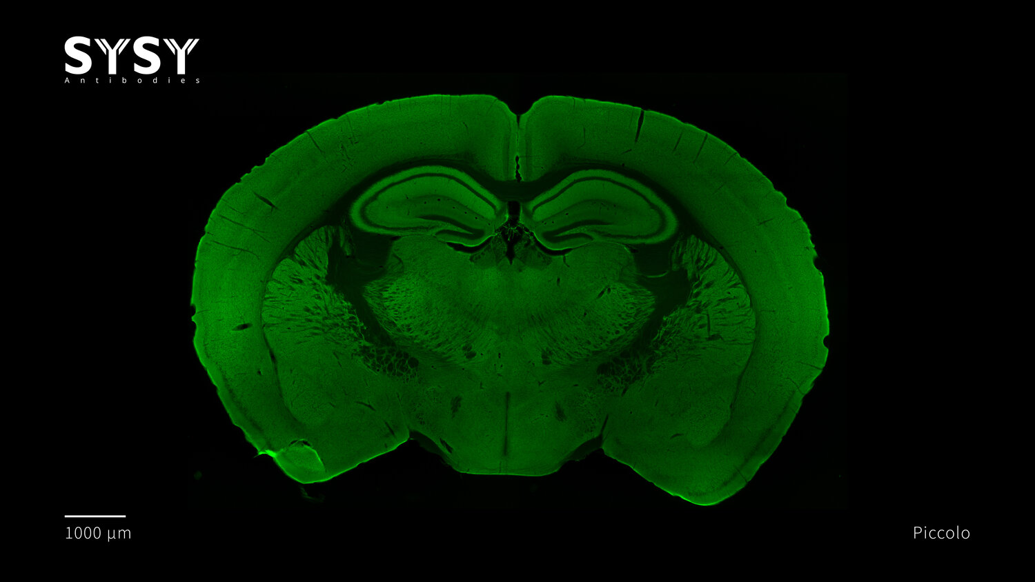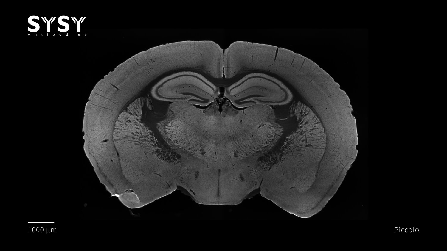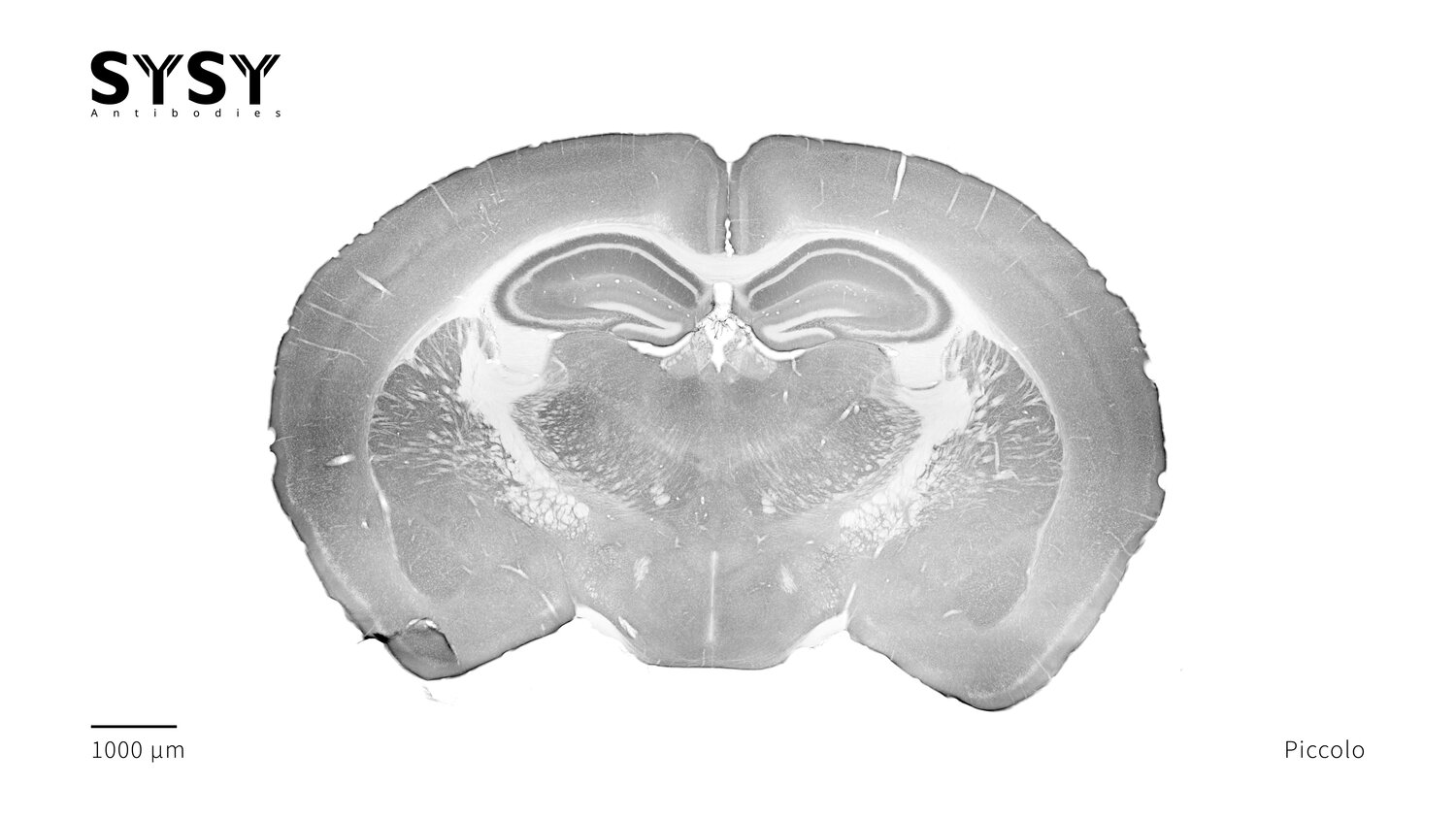Indirect immunostaining of a formaldehyde fixed coronal mouse brain section with rabbit anti-Piccolo antibody (cat. no. 142 008, dilution 1 : 500).