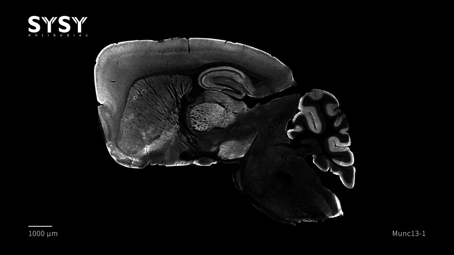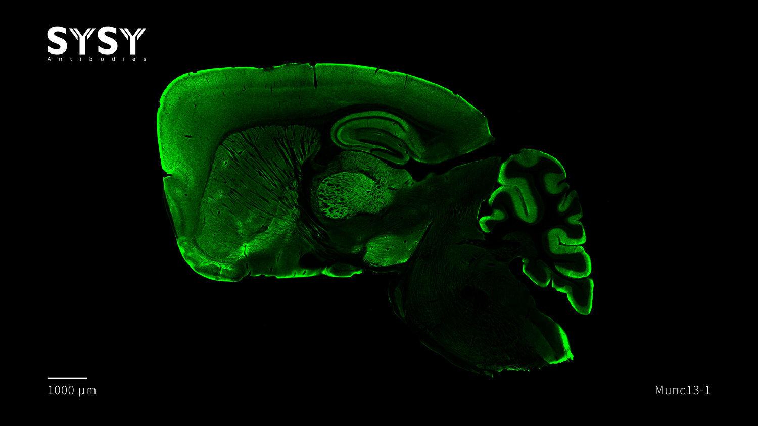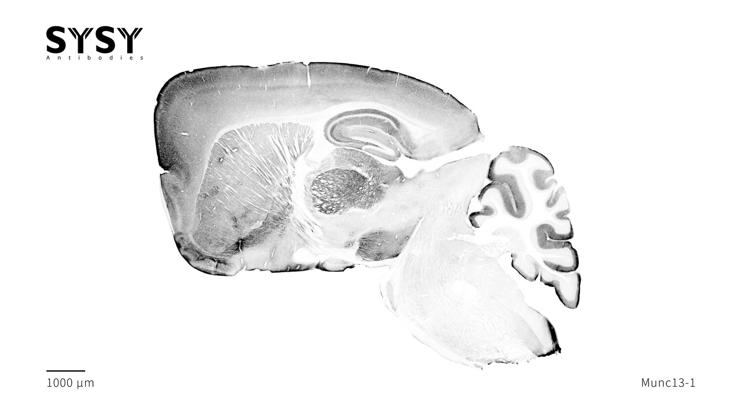 Indirect immunostaining of a formaldehyde fixed mouse brain section with rat anti-Munc13-1 antibody (cat. no. 126 117, dilution 1 : 500).