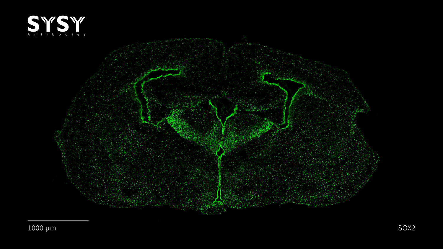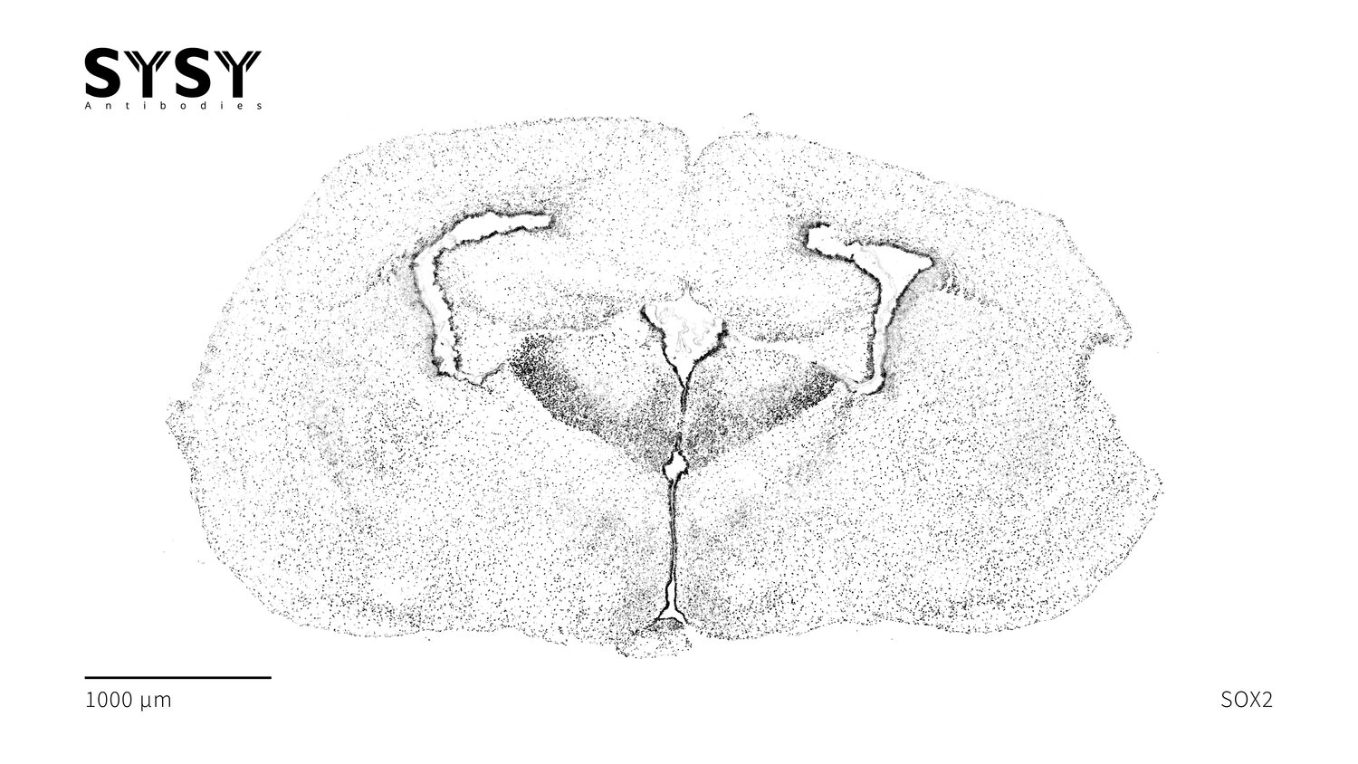 Indirect immunostaining of a formaldehyde fixed coronal newborn mouse brain section (P0) with rabbit anti-SOX2 antibody (cat. no. 347 003, dilution 1 : 500).