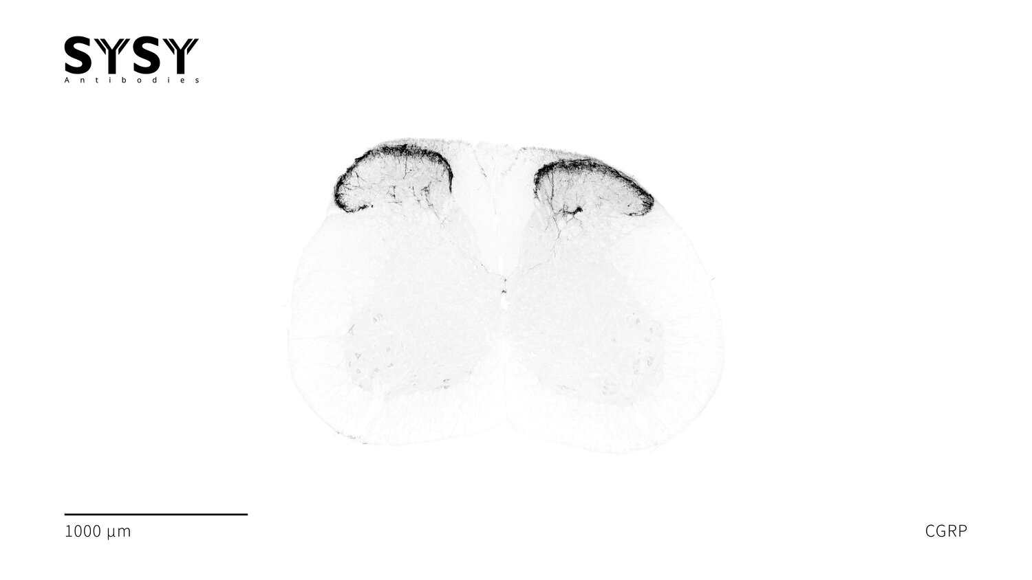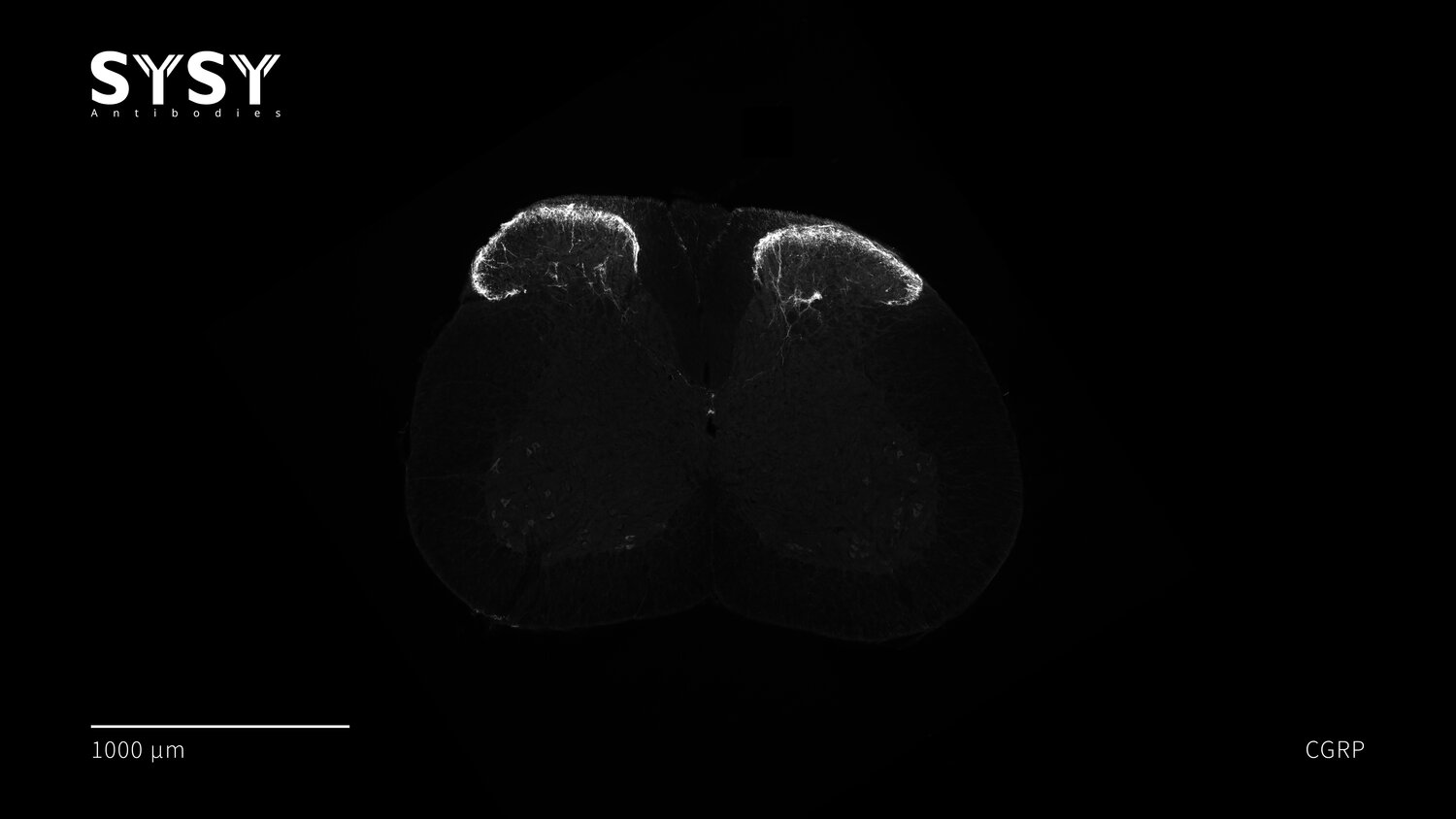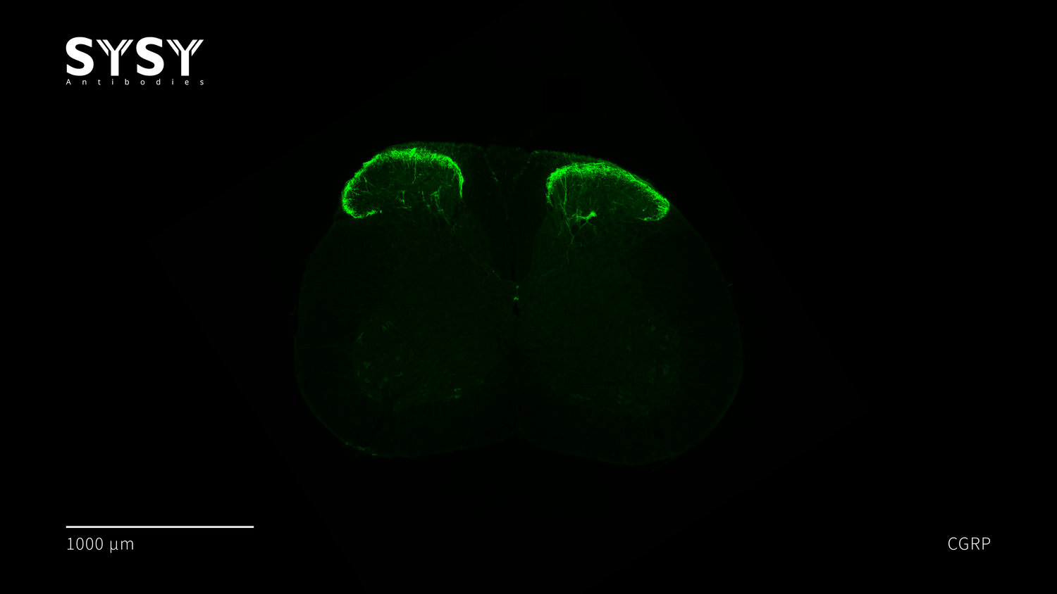 Indirect immunostaining of a formaldehyde fixed mouse spinal chord section with guinea pig anti-CGRP antibody (cat. no. 414 004, dilution 1 : 500).