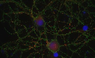 The post-synaptic density contains several proteins including neurotransmitter receptors, scaffolding and signaling proteins.