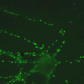 Synaptophysin1 has four transmembrane domains with both N- and C-terminus facing the cytoplasm. It binds to synaptobrevin1 and synaptobrevin2 in detergent extracts but its function has not been elucidated completely. It forms a complex with dynamin at high Ca2+ concentration suggesting an involvement in synaptic vesicle endocytosis. As typical for synaptic vesicle proteins, synaptophysin1 represents a small protein family with two additonal members, synaptoporin (synaptophysin2) and panthophysin. Like synaptophysin1, synaptoporin is widely expressed in neurons and colocalizes with synaptophysin1 on synaptic vesicles whereas panthophysin is expressed in all tissues.