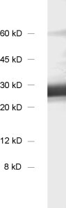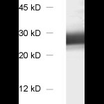 50 µg specific antibody, lyophilized. Affinity purified with the immunogen. Albumin was added for stabilization. For reconstitution add 50 µl H2O to get a 1mg/ml solution in PBS. Then aliquot and store at -20°C to -80°C until use. Antibodies should be stored at +4°C when still lyophilized. Do not freeze! |