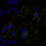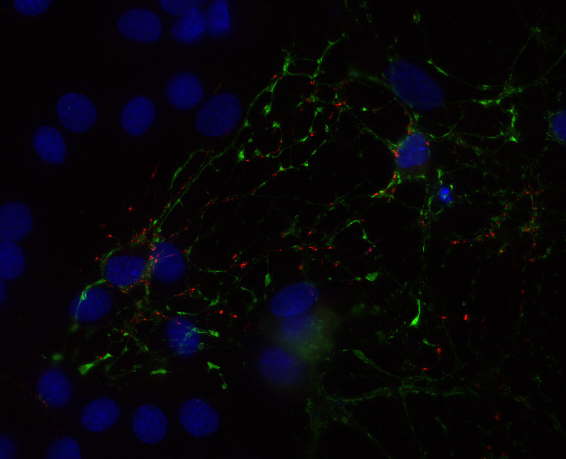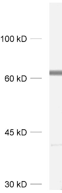 Synaptotagmin2 is an integral membrane glycoprotein of neuronal synaptic vesicles. It is very similar to synaptotagmin1 but shows a partly complementary expression pattern in the CNS. Synaptotagmin2 lacks a CAMK II/PKC phosphorylation site which is present in synaptotagmin1.