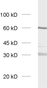 100 µg purified IgG, lyophilized. Albumin was added for stabilization. For reconstitution add 100 µl H2O to get a 1mg/ml solution in PBS. Then aliquot and store at -20°C to -80°C until use. Antibodies should be stored at +4°C when still lyophilized. Do not freeze! |