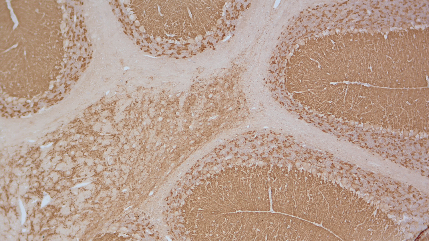 Unlike integral membrane proteins of synaptic vesicles, Rab3a and Rab3c are absent from the Golgi complex, preventing immunostaining of the axo-dendritic region, which can occur with proteins such as synaptophysin, synaptobrevin/VAMP, or synaptogyrin (1).
