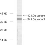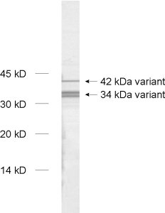 This antibody detects the 35 kDa and 42 kDa variants of syntaxin 5.