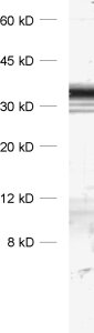 Cat. No. 110 403 50 µg specific antibody, lyophilized. Affinity purified with the immunogen. Albumin was added for stabilization. For reconstitution add 50 µl H2O to get a 1mg/ml solution in PBS. Then aliquot and store at -20°C to -80°C until use.