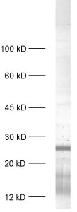 50 µg specific antibody, lyophilized. Affinity purified with the immunogen. Albumin and azide were added for stabilization. For reconstitution add 50 µl H2O to get a 1mg/ml solution in PBS. Then aliquot and store at -20°C to -80°C until use. Antibodies should be stored at +4°C when still lyophilized. Do not freeze! |