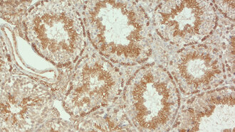 50 µg specific antibody, lyophilized. Affinity purified with the immunogen. Albumin and azide were added for stabilization. For reconstitution add 50 µl H2O to get a 1mg/ml solution in PBS. Then aliquot and store at -20°C to -80°C until use. Antibodies should be stored at +4°C when still lyophilized. Do not freeze! |
