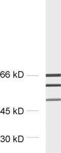 WB: This antibody detects two smaller bands (possible degradation products) of unkown identity.