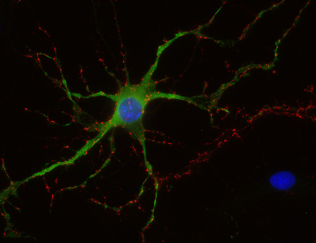 SV2s (Synaptic Vesicle Protein 2) are integral membrane glycoproteins present in synaptic vesicles. They have 12 transmembrane domains predicted by sequence analysis (1). There are three characterized isoforms, SV2 A, SV2 B and SV2 C that are similar in structure but show different expression patterns. SV2 A is expressed ubiquitously throughout the brain and plays a crucial role in modulating synaptic transmission by regulating the expression and trafficking of synaptotagmin, a key calcium sensor in neurotransmitter release (1).