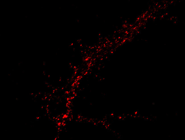 SV2s (Synaptic Vesicle Protein 2) are integral membrane glycoproteins present in synaptic vesicles. They have 12 transmembrane domains predicted by sequence analysis (1). There are three characterized isoforms, SV2 A, SV2 B and SV2 C that are similar in structure but show different expression patterns. SV2 A is expressed ubiquitously throughout the brain and plays a crucial role in modulating synaptic transmission by regulating the expression and trafficking of synaptotagmin, a key calcium sensor in neurotransmitter release (1).