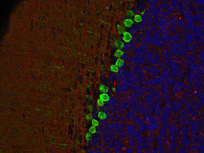 SV2s (Synaptic Vesicle Protein 2) are integral membrane glycoproteins present in synaptic vesicles. They have 12 transmembrane domains predicted by sequence analysis (1). There are three characterized isoforms, SV2 A, SV2 B and SV2 C that are similar in structure but show different expression patterns. SV2 A is expressed ubiquitously throughout the brain and plays a crucial role in modulating synaptic transmission by regulating the expression and trafficking of synaptotagmin, a key calcium sensor in neurotransmitter release (1).