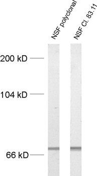 Immunogen Recombinant protein corresponding to AA 1 to 744 from rat NSF (UniProt Id: Q9QUL6)