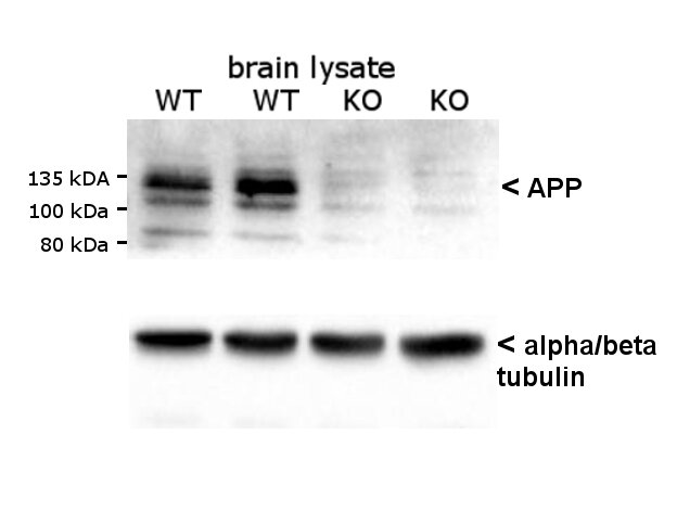 Amyloid precursor protein APP is part of a super-family of transmembrane and secreted proteins. It appears to have a number of roles, including regulation of haemostasis and mediation of neuroprotection. APP also has metal and heparin-binding properties. Cleavage of amyloid precursor protein by β- and γ-secretases results in the generation of the Aβ (βA4)peptide, whereas α-secretase cleaves within the Aβ sequence and prevents formation from APP.