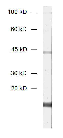 50 µg specific antibody, lyophilized. Affinity purified with the immunogen. Albumin and azide were added for stabilization. For reconstitution add 50 µl H2O to get a 1mg/ml solution in PBS. Then aliquot and store at -20°C to -80°C until use.