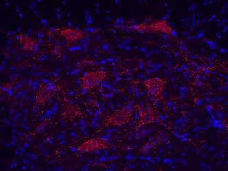 This antibody is a chimeric antibody based on the rat monoclonal mouse antibody clone 15A11. The constant regions of the heavy and light chains have been replaced by rabbit specific sequences. Therefore, the antibody can be used with standard anti-rabbit secondary reagents. The antibody has been expressed in mammalian cells. |